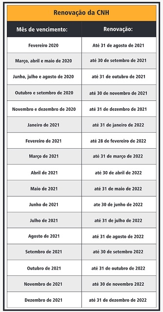 Segundo a Deliberação 230 do Contran, a renovação da carteira de habilitação (CNH) e Autorização para Conduzir Ciclomotor (ACC) vencidas entre 1º de fevereiro de 2020 e 31 de dezembro de 2021, passa a seguir novo cronograma.